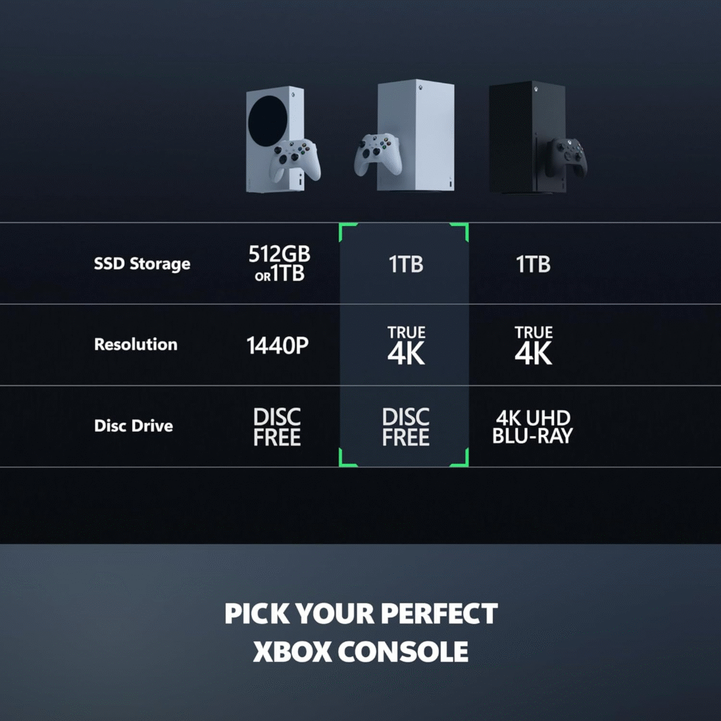 - Xbox Series X – Best for Game Pass lovers Xbox Series X – All Digital Gaming Console – 1TB SSD – Includes Wireless Controller – 4K Gaming – 120FPS – Robot White 👉 Check latest price on Amazon