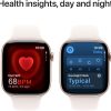 - ADVANCED HEALTH INSIGHTS — Take an ECG anytime.* Use the Blood Oxygen app.* Get notifications if you have high or low heart rate or an irregular heart rhythm.* Understand your menstrual cycle and get retrospective ovulation estimates.* See overnight health metrics like heart rate, respiratory rate, and more with the Vitals app.* Track sleep and get notifications if Apple Watch detects signs of sleep apnea.*
